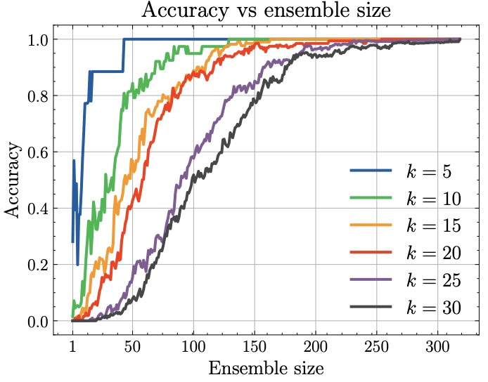 Exact Learning of Permutations for Nonzero Binary Inputs with Logarithmic Training Size and Quadratic Ensemble Complexity